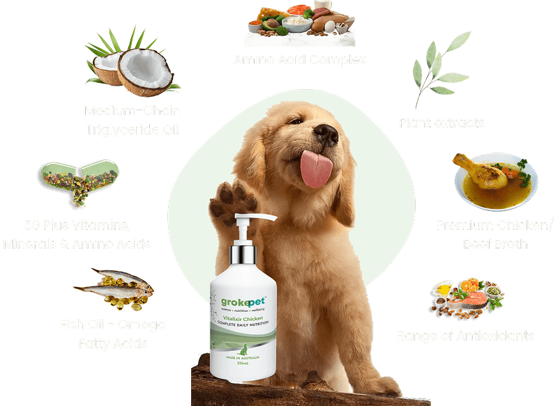 Groke Pet supplements, like Vitalixir Complete Daily Nutrition, support your pet’s immune system.