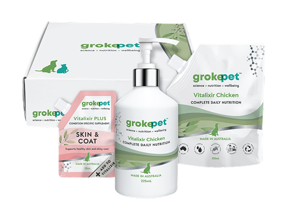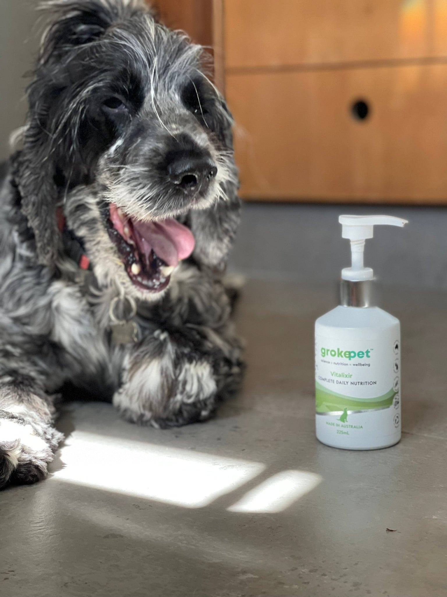 Groke Pet supplements, like Vitalixir Complete Daily Nutrition, support your pet’s immune system.
