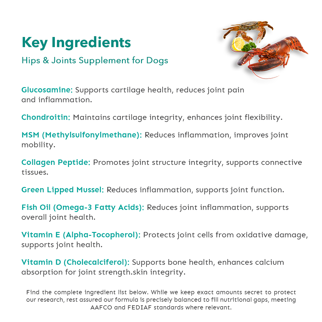 Boost your dog's mobility, enhance joint health, and support overall vitality. Help them run, play, and live pain-free.